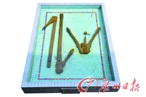 而在台山市博物馆中,目前收藏着3件沉船木锚,分别是2007年和2012年在台山浪琴湾海域被渔民发现的;经过有关专家鉴定,3件木锚为宋元时期船只使用,据此估计发现木锚的水域有两艘以上宋元时期航行在海上丝绸之路上的商船发生沉没。“从这些木锚的大小来看,当时的沉船估计有几十米长。”蔡和添说,“发现这些木锚的海面,位于台山的北陡镇与漭洲岛之间,距离‘南海一号’沉船地点仅5海里,也说明台山曾是‘海上丝绸之路’的一站。”