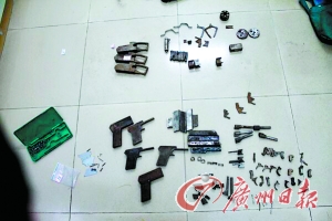 本报清远讯(记者曹菁 通讯员李朝才摄影报道)清远市清城区警方昨天通报,清远市清城区横荷派出所经过两个月的排查,捣毁了一个制贩枪支和毒品的犯罪团伙,抓获犯罪嫌疑人员多名,缴获成品枪支3支及零部件一批,毒品约5公斤、相关原料一批。