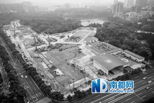 8月13日,俯瞰在建中的天河公园地铁站。实习生 张梓望 南都记者 马强 摄