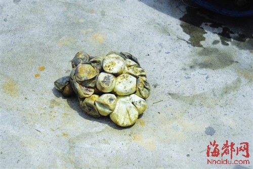 从桶里拿出来的蛇蛋,可惜已经坏了