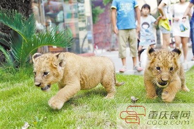 饲养员石如强说,两只小狮子一雄一雌,刚出生时只有0.5千克,现在已经长到了5千克。现在小狮子正由狮妈妈进行哺乳喂养,当长到3个月时,就会适量的喂一些肉类和鸡蛋等饲料,使它们能够更顺利地成长,两只小狮子目前长势良好、身体健康。文图/重庆晨报记者 吴国富