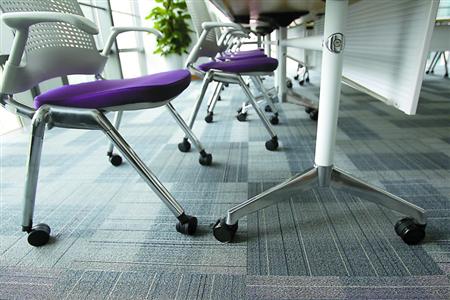 上海纽大平面教室中的桌椅都有轮子,可根据课堂需要随时改变布局,比如用于学生分组辩论,以及多媒体教学互动等。蒋迪雯摄