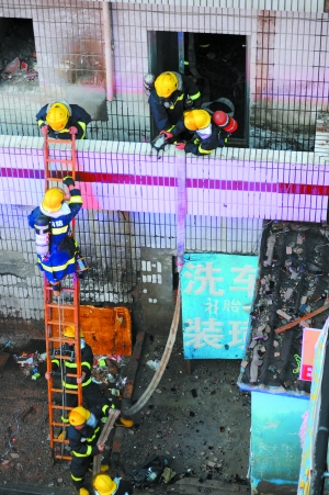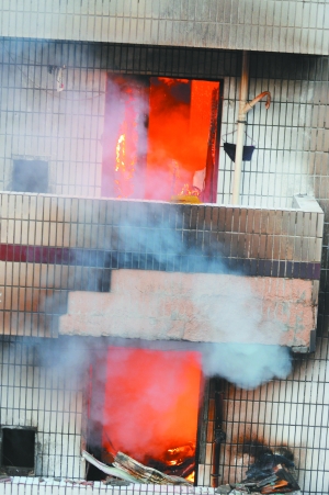 受灾住户家中火光冲天。 本报首席记者 裴强 摄