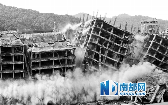 广州白云区太和镇大源村以爆破方式强拆违建。 南都资料图