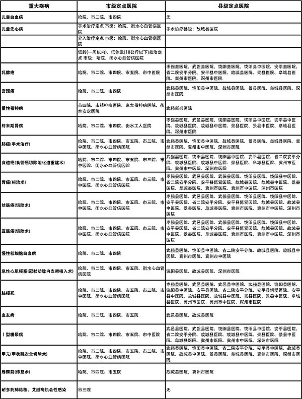 衡水市新农合重大疾病定点医疗机构公布