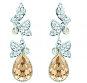 妩媚浪漫、造型多变的镀白金色耳环,缀有精致悦目的密镶水晶花朵和蝴蝶,尽显无可抗拒的自然魅力。作品的梨形金色水晶可轻易拆下,方便根据场合来打造两种不同风格。