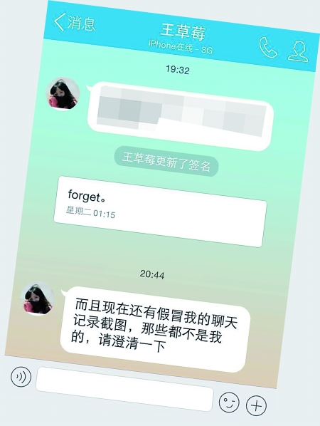 “王草莓”还告诉记者,她并没有在淘宝上开网店专做陪聊服务。“我有我自己的正当职业,并没有想过以这个(陪聊)为生。”对于跟风发帖,她感到后悔。