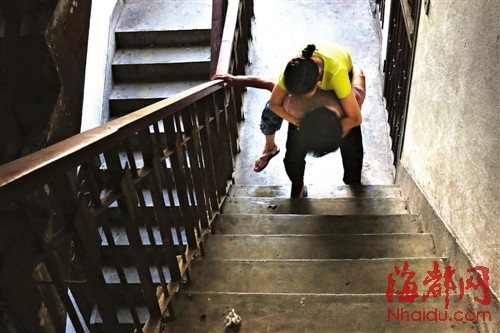 年事已高的奶奶,每天背着孙女进进出出,照顾孙女的饮食起居