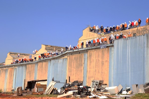 据凤凰网报道 美联社8月24日报道,当地时间24日,巴西南部城市凯斯卡维尔(Cascavel)一监狱发生暴乱,包括两名监狱工作人员和数名囚犯在内的多人成为人质,至少2名囚犯被斩首,另有一人被从屋顶上抛下身亡。监狱设施也因囚犯放火和打砸遭到破坏。