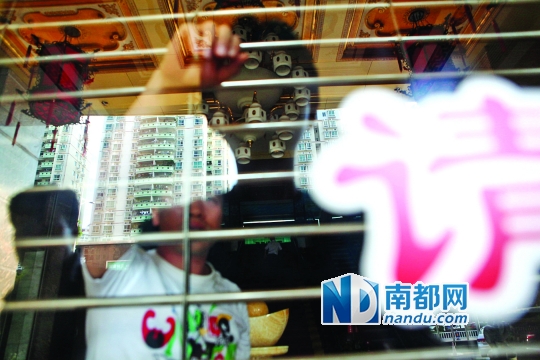 路路通集团旗下多家经营珠宝玉石红木家具的档口都大门紧锁,门上落上了一层灰尘。图为该集团员工在里面禁止外人拍照入内。 南都记者 田飞 摄