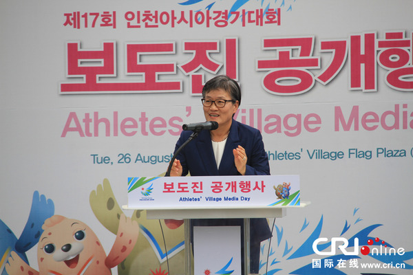 仁川亚运运动员村村长李艾丽莎致辞
