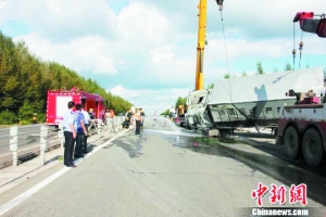 信息时报讯 昨日12时许,黑龙江省哈同高速300公里路段(依兰县境内),一辆运钞车在行驶过程中,由于爆胎导致侧翻,所幸没有造成人员伤亡。