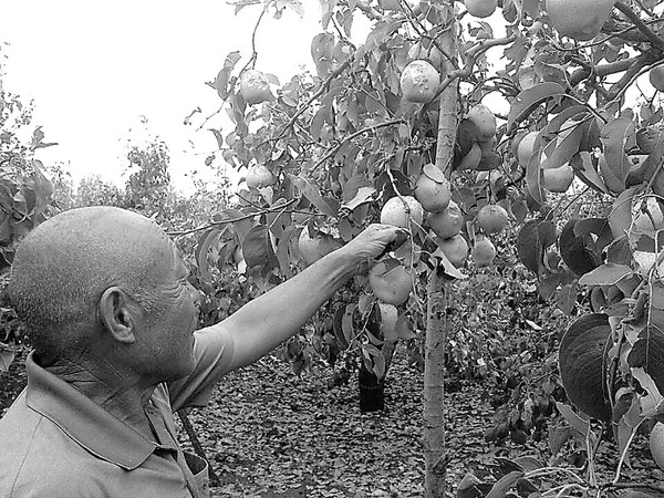 惊心:树下到处散落着被砸坏的梨