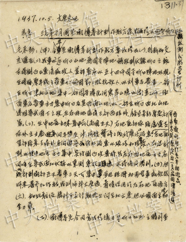 1. 1937年10月5日,周恩来关于我提出的作战方案阎锡山、卫立煌完全同意致毛泽东、朱德、彭德怀电(中央档案馆提供)