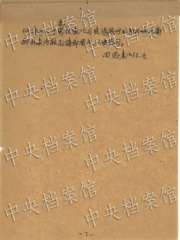 2. 1937年10月12日,周恩来关于与阎锡山商谈忻口作战部署情况致朱德、彭德怀电(中央档案馆提供)