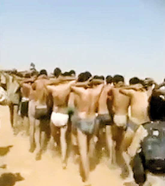在网络上流传的一份未经证实的录像也疑似显示了当时的场景。在录像中,一长队只着内衣的青年男子在蒙面武装人员的注视下行走在荒漠中,而之后的镜头则显示这些青年男子排成一排趴在地上,疑似已被处决。