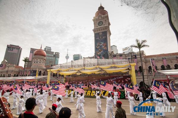 马来西亚国庆。8月31日,在马来西亚首都吉隆坡,演员们在国庆庆典上挥动国旗。 当日,马来西亚在吉隆坡独立广场举行国庆典礼,庆祝独立57周年。 新华社发(张纹综摄)