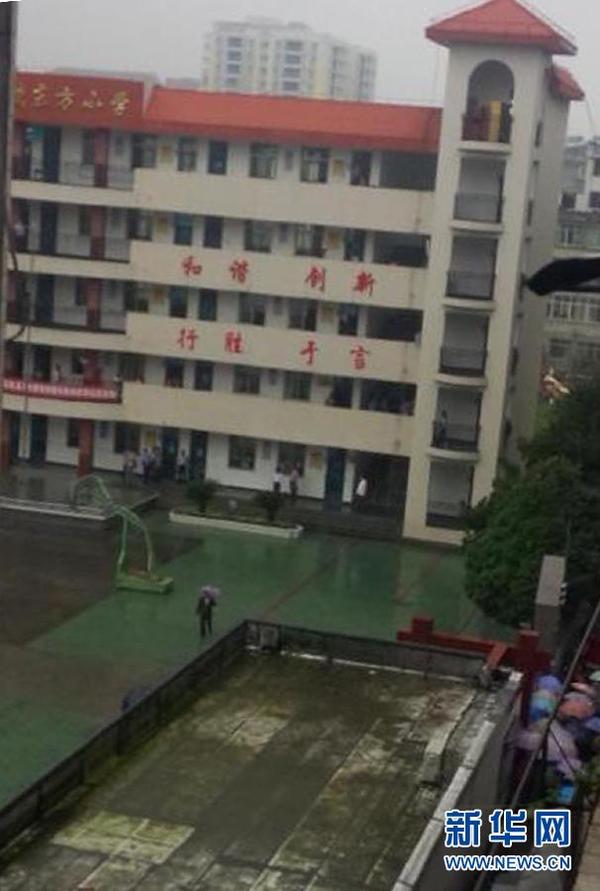 这是9月1日拍摄的事件现场。 9月1日上午10时20分,湖北省十堰市郧西县城关镇东方小学发生一起持刀伤人事件,犯罪嫌疑人陈某持刀闯入校园,砍伤学校师生9人(1人教师,8人为学生),造成其中3名学生身亡,犯罪嫌疑人当场跳楼自杀。新华社发