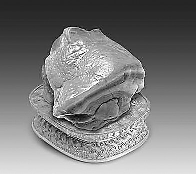 据介绍,“东坡肘子”收藏者于瑞军先生是国家观赏石鉴评师和估价师,他收藏的此方奇石产于浙江省金华市,其外观酷似红烧肘子,且皮、膘、肉、骨、毛(孔)五要素齐全,皮色焦黄微透,脂肪洁白细腻,肉质红润发亮。看上去软糯酥烂、醇厚肥香,仿佛散发着缕缕诱人的美味,令人垂涎。因其鬼斧神工、震撼人心的艺术魅力,此前已屡获殊荣,蜚声海内外,在台湾“2014海峡两岸赏石文化交流展”上,被台北故宫和岛内专家学者誉为“中华第一肉石”。![]()