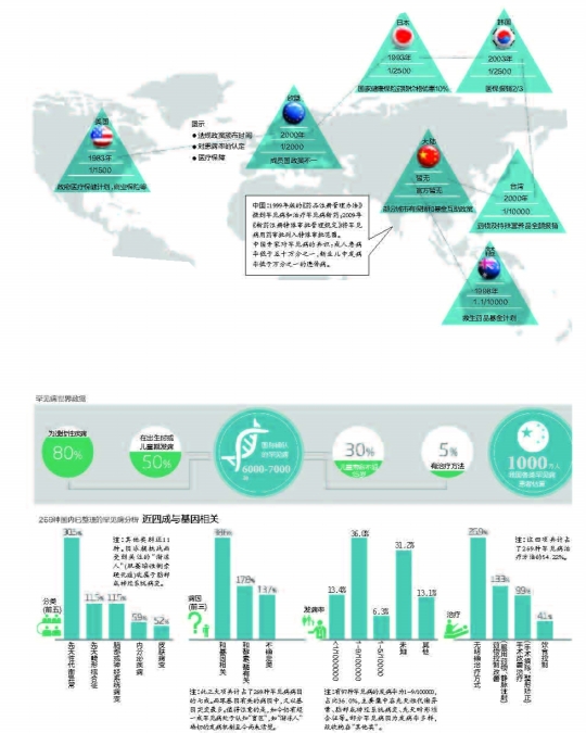 罕见病(R areD isease),是指流行率很低、很少见的疾病,一般为慢性、严重性疾病,常危及生命。数据显示,约80%的罕见病是遗传性疾病,约50%罕见病在出生时或者儿童期发病,而仅有不到5%的罕见病有治疗方法。在我国,罕见病患者估计超过1000万人。