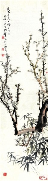 沈觐寿梅竹双清129cm×35cm
