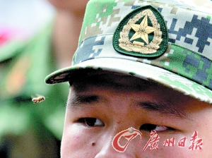 欢送仪式上,一只蜜蜂在新兵面前飞来飞去。 记者庄小龙 摄