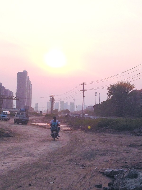9月7日,记者在栗水清苑小区看到,近50米宽的仓丰路坑坑洼洼,路面上堆弃着各种建筑垃圾,路旁杂草丛生,一排旧式的电线杆戳在道路中央十分显眼。小区居民告诉记者,只要有汽车驶过,车后就会扬起一路灰尘。仓丰路是栗水清苑小区和南栗村通向裕翔街最便捷的道路,附近来往的车辆很多,因此整条道路常常被笼罩在尘土中。“这条路太脏、太难走了,经常是晴天一身土,雨天一身泥。”小区一位业主说,鉴于道路破烂不堪的路况,居民们出行往往“舍近求远”,选择仓盛路绕行。家住2号楼的王先生说,曾经因为下雨道路泥泞,他的车就差点托底。