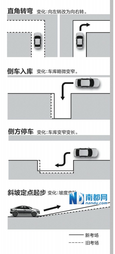 据悉,相较于科目二旧考场,位于光前村附近的新考场按照最新的《机动车驾驶人考试场地及其设施设置规范》设计。在科目二考试的“倒车入库”、“坡道定点停车和起步”、“侧方停车”、“曲线行驶”、“直角转弯”五项中,除“曲线行驶”外,其余四项均有微调。