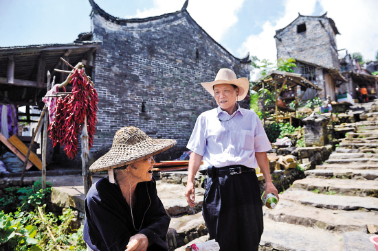 曾在连南瑶族自治县工商、发改等部门担任领导职务的邓志勇出生在南岗瑶寨,是末代瑶王邓卖尾八公的侄孙,今年5月份刚刚退休。虽然12岁时便搬迁至山下居住,成年后因公务繁忙很少回到山上的瑶寨,但他对南岗古排充满感情,退休后不时上山看一看。