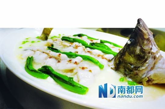 芙蓉桂鱼:“食鱼者首重在鲜”,用来形容顺德菜,再贴切不过。因为食材本身的鲜美,烹饪中也就极少用浓烈刺激的咸酸辛辣味,火候也掌握得恰到好处,既不能生,也不能过熟,如此才能保证菜品的鲜嫩纯正。万丽轩的另一道顺德经典菜品芙蓉桂鱼便是清淡且鲜甜。鱼肉切片去骨,下有嫩嫩的炖蛋铺底,吃起来爽口鲜滑,也不必担心鱼骨刺喉的问题,最是适合老人小孩。这道菜看似简单,其实最考验师傅的火候掌控,垫底的芙蓉(蛋清)和鱼片都是易熟的食材,稍微过一点火候就会变老和流失鲜味,所以能保持如此鲜嫩实是难得。