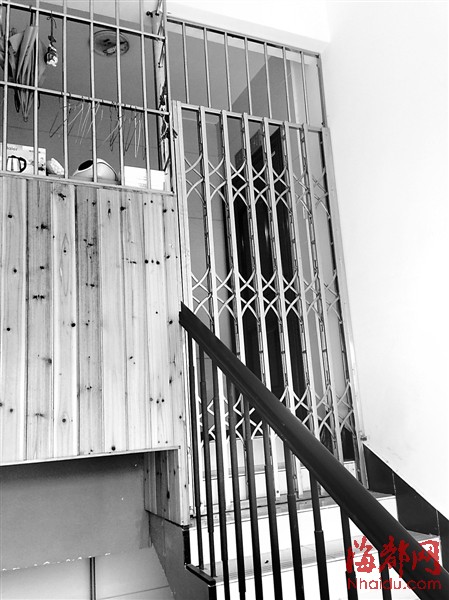 前日上午,海都记者来到16号楼看到,楼顶602住户门外的楼梯口处,安装了一个铁门。由于大门紧锁,记者无法进入6层楼顶的天台。住在楼下501的方先生担心说,设置了铁门后,消防通道就被堵死了,如果发生火灾了怎么逃生?