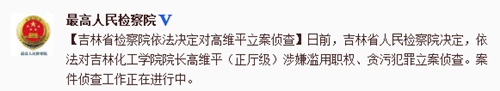 吉林化工学院院长高维平涉嫌滥用职权、贪污犯罪被立案