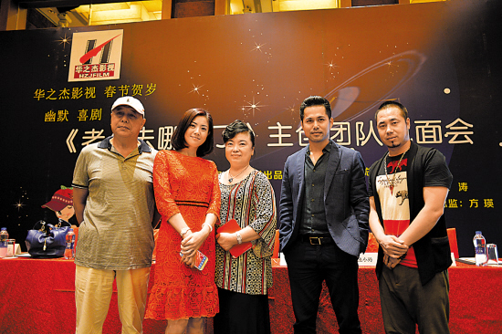 导演沈涛(左)、出品人方莘莘(中)与吉飞龙(右二)等主创出席发布会