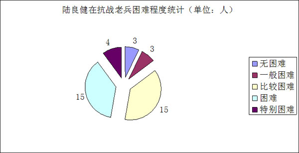 而记者根据深圳龙越慈善基金会、陆良县老龄委提供的陆良健在抗战老兵资料进行了统计,发现超过9成的老兵存在生活困难的问题。此外,老兵们的健康状况、赡养问题也不容乐观。