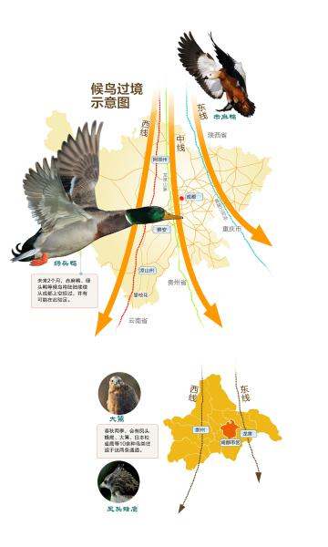 昨日,记者从成都观鸟协会得知,今年秋季的候鸟迁徙已经开始。在未来的2个月时间里,赤麻鸭、绿头鸭等候鸟将陆陆续续从成都上空掠过,并有可能在此驻足。