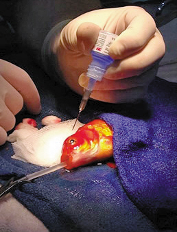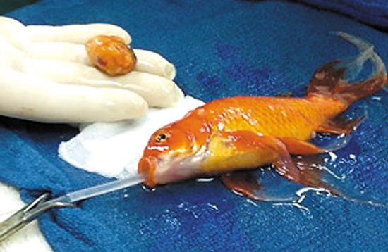 给患脑瘤的金鱼做手术