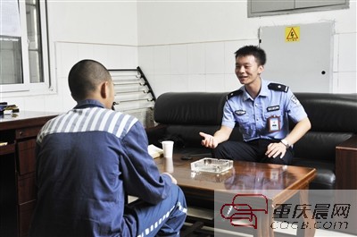 狱警跟胡松谈心。