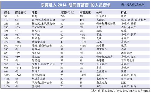 原标题:东莞20富豪登“胡润榜”