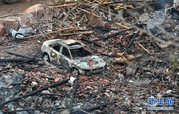 这是湖南醴陵花炮厂爆炸事故现场被烧毁的车辆(9月23日摄)。 9月22日15时许,位于湖南醴陵市浦口镇保丰村的南阳出口花炮厂发生爆炸事故,截至23日中午,爆炸事故的死亡人数上升至13人,另有1人失联,33人受伤。尽管事故原因仍在调查当中,但各种迹象显示,从事故发生到救援处置,都存在各种人为的隐患。花炮产业再次用生命敲响了安全生产的警钟。新华社记者 龙弘涛 摄