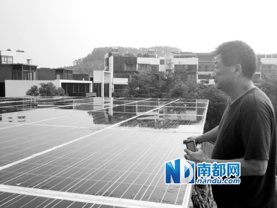 安装公司技术顾问在回访干先生家安装的太阳能发电站。南都记者 寇金明 摄