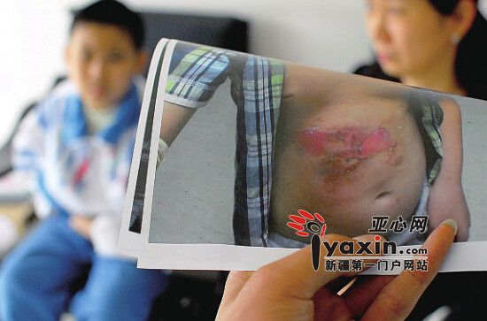 亚心网讯(记者 刘新草)9月23日,放学回家的路上,9岁的亮亮一直把右手揣在口袋里,小心翼翼地跟在妈妈身后,“现在右手还不能握笔写字,医生说这只手不能见光,否则会留下印子。”二十多天前,亮亮跟着妈妈去饭馆就餐,其间他和小朋友一同去上厕所,没想到和端着滚烫鱼锅的服务员相撞,导致他的右手臂和腹部被烫伤。