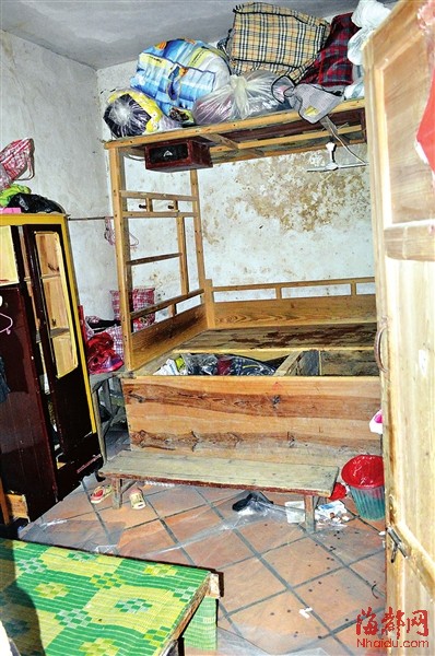 遇害母子三人所住的房间,床板上仍血迹斑斑