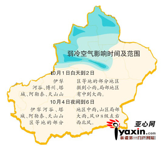 自治区气象台首席预报员张云惠介绍,虽然没有强冷空气,但有两次弱冷空气将在节日期间掠过我区,主要影响北疆偏北、偏西的一些地方,并给这些地方带来比较明显的降水,气温会略有下降,同时会对交通出行有一定影响,需要进山的游客要注意出行安全。弱冷空气过境后,气温将缓慢平稳回升。 【详细阅读】![]()