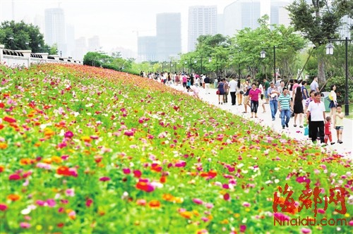 在采访过程中,记者曾多次看到有小孩想要摘花,但都被家长制止了。“这么漂亮的公园建起来不容易,我们不能破坏它,而且小孩子文明意识也需要从小培养。”一位家长说。![]()
