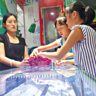 步行街各商家人满为患,而聚集在此的多家珠宝店,更受外地游客的青睐。但今年8月份,新京报曾曝光王府井多家珠宝店的抽奖促销陷阱:一个标价3000多元的玉石,抽中一等奖后打一折卖300多,而经鉴定,这款产品实际只值30多元。新京报记者对此前被曝光的几家店面进行探访,发现还有商家设置了“抽奖”促销。