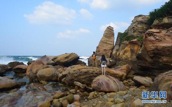 这是10月6日在台湾东北角海岸拍摄的奇石。宝岛台湾的东、北海岸除了宽广的海洋之外,还拥有许多鬼斧神工的天然地景。这里海岸受到海水长年的冲击,产生侵蚀、搬运及堆积作用,地形非常丰富,进而雕塑出种种天然之美的海蚀奇景。新华社记者王庆钦 摄![]()