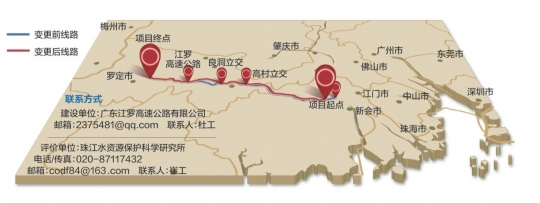 南都讯 记者严亮 日前,江门市交通运输局对江门至罗定高速公路工程变更环境影响评价进行信息公示。与原工可阶段的项目内容相比,多处发生变更,项目起点变为佛开高速共和线,项目全长由原来的147.358公里缩短至144.009km。车道由双向八车道调整为双向六车道,隧道和服务区等建设也发生改变。对于此次变更对环境可能产生的影响,市民如有意见或建议可向建设和评价单位反映。
