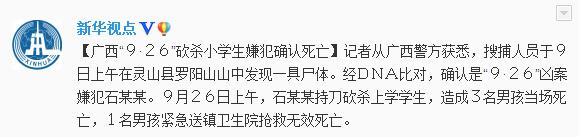 广西警方确认灵山县砍杀4名小学生嫌犯已死亡
