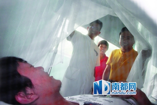 前天上午,记者来到台山市人民医院采访时了解到,台山市人民医院目前仍有3名登革热患者在住院治疗,但3人均为在外地感染后回台山的,因此不算台山市的病例统计。陈某(化名)告诉记者,他和家人平时一直在广州打工,国庆节回老家,小孩和妻子都出现了发烧的情况,后来到医院检查才知道是登革热,第二天自己也被检查出登革热。“她们娘俩已经出院了,现在就剩下我一个人在这里了,幸好还有病友可以聊天。”隔着蚊帐,他告诉记者,目前自己已经恢复得差不多了,估计很快可以出院。