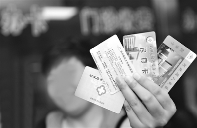 患者看病时办理的不同医院的就诊卡。本报记者田瑞夫摄
